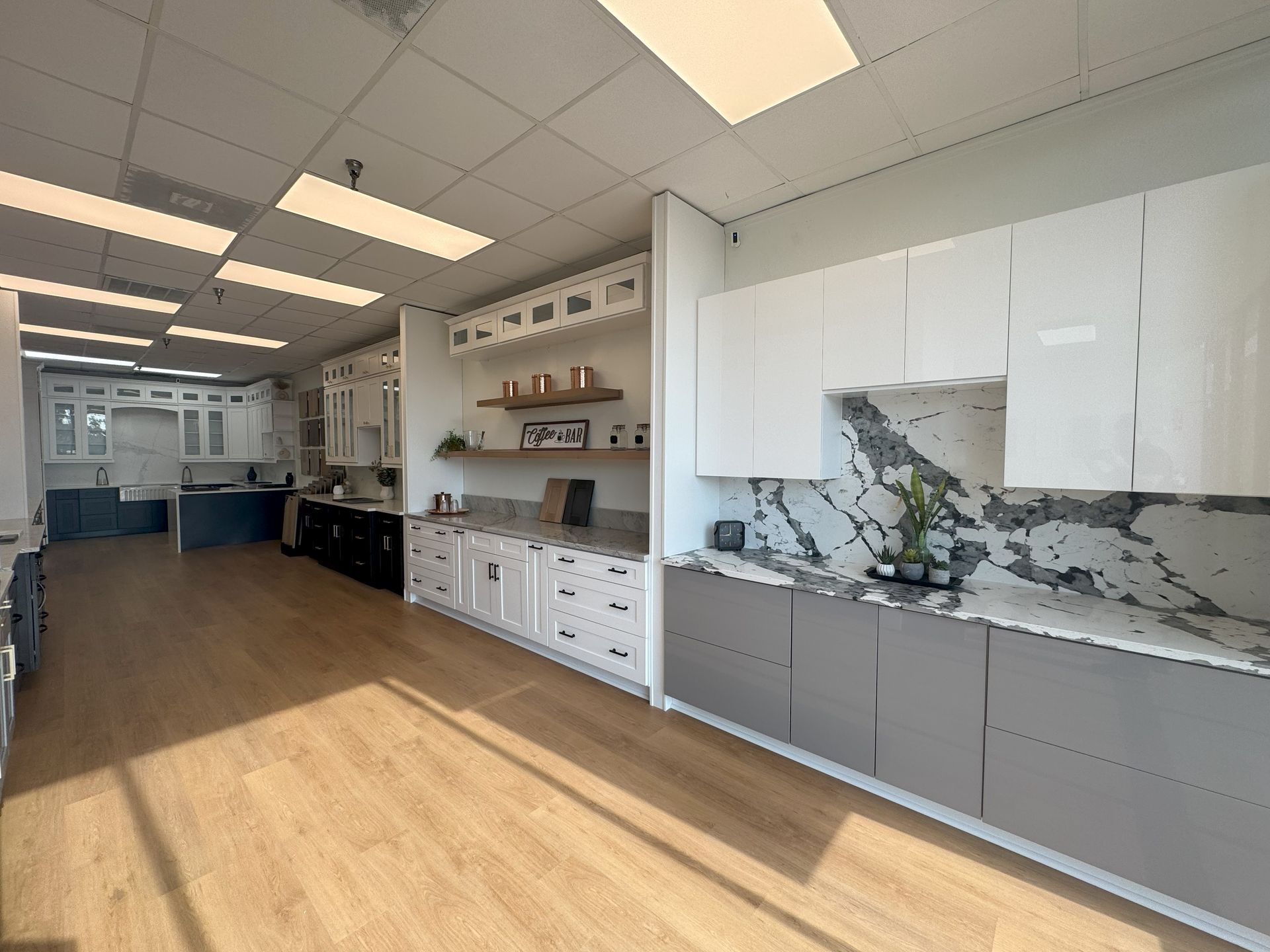 Usually, these trendy finishes require a custom cabinet maker and a 12-week lead time. At Sunshine Home Material, we stock these styles right here in Orlando.
