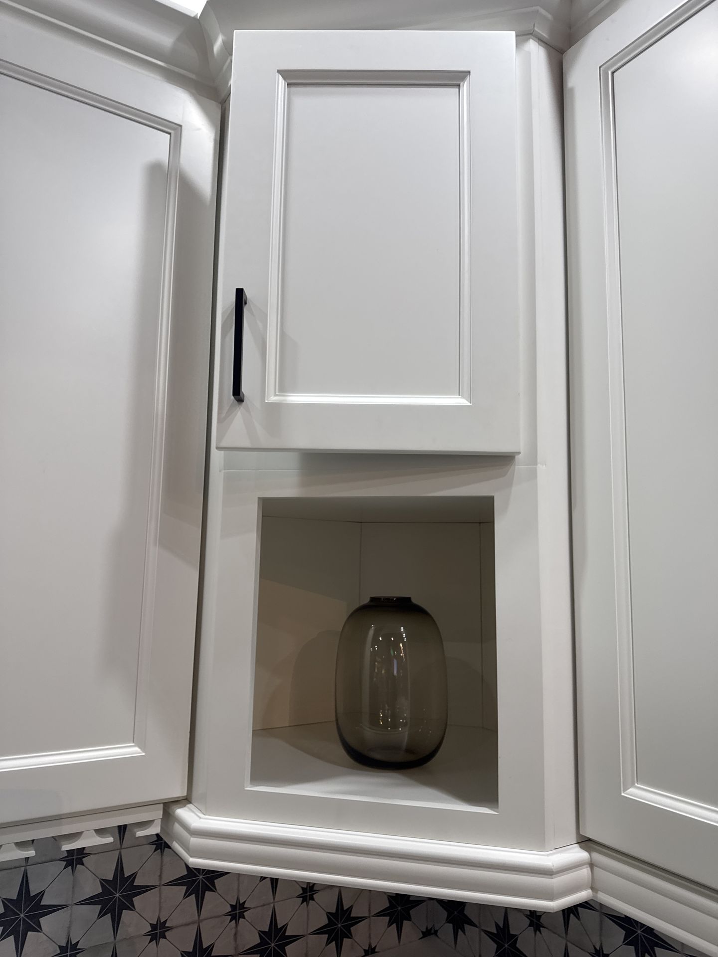 Adds depth with its layered design and soft white finish. Bright and soothing, it’s ideal for transitional or farmhouse spaces seeking subtle architectural charm.