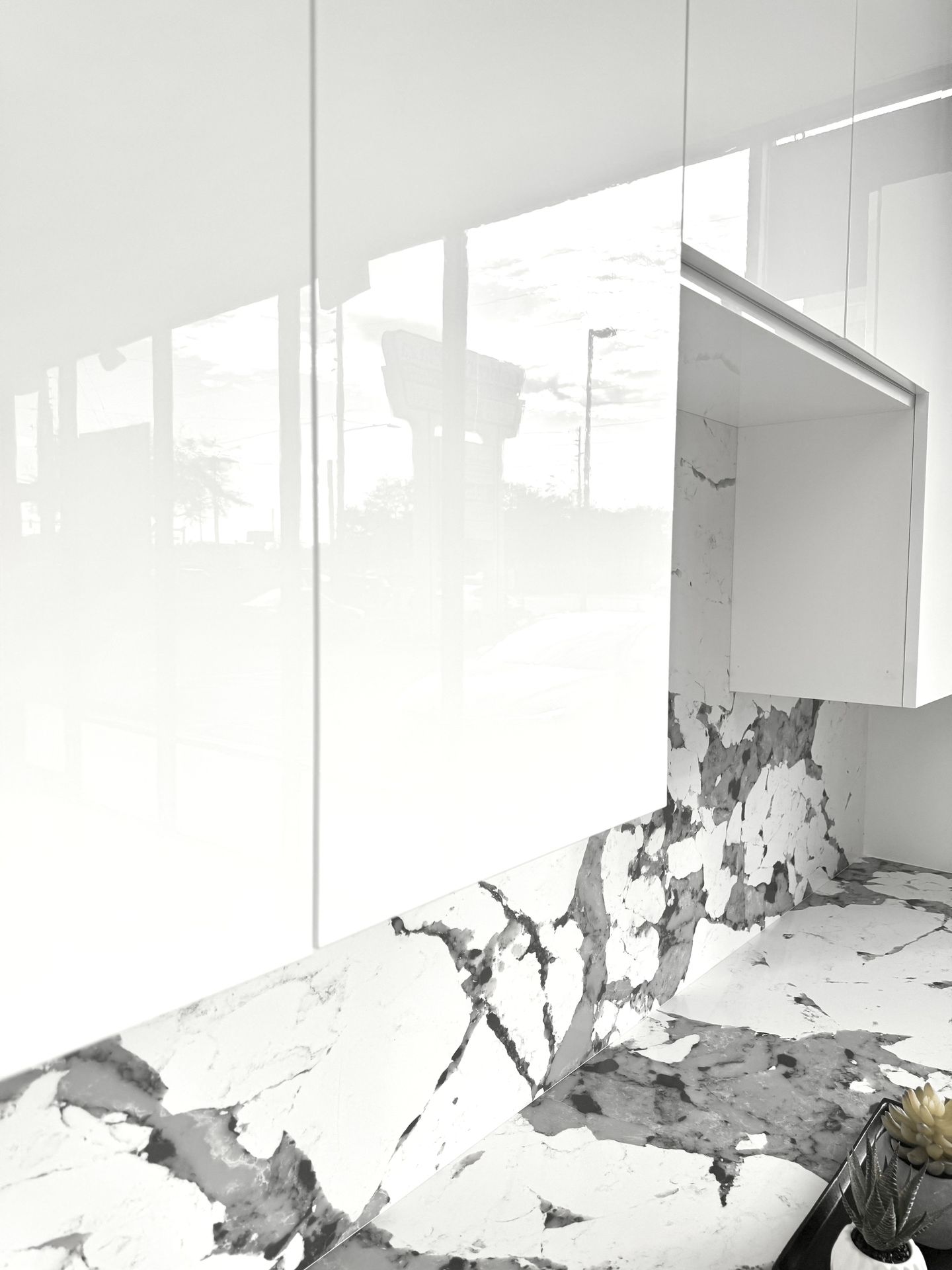 Glossy acrylic or PET finish for a modern mirror-smooth surface