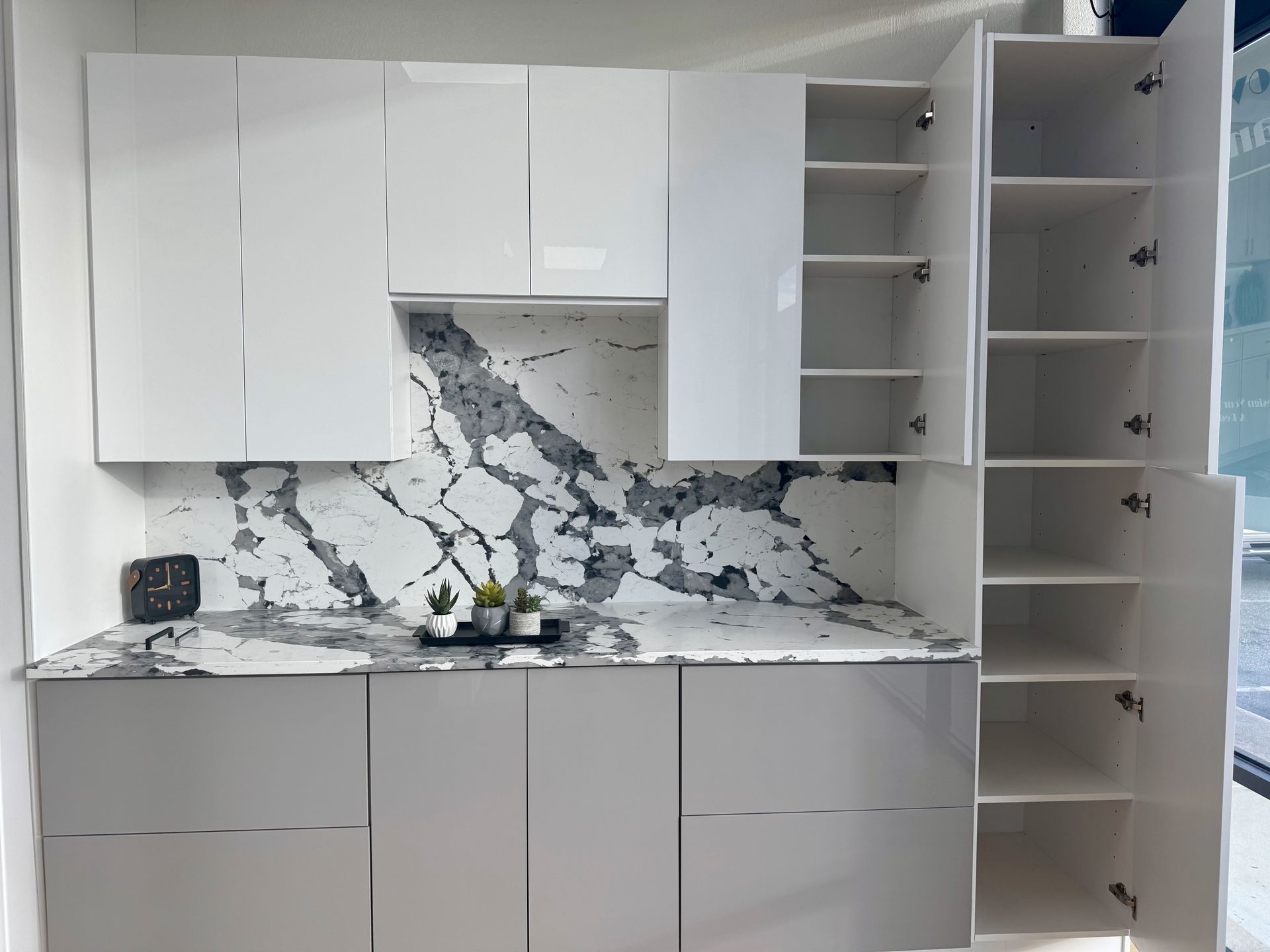 Delivers a bright, modern look with a glossy finish that enhances light and space. Its frameless design offers a clean, versatile foundation for any style.
